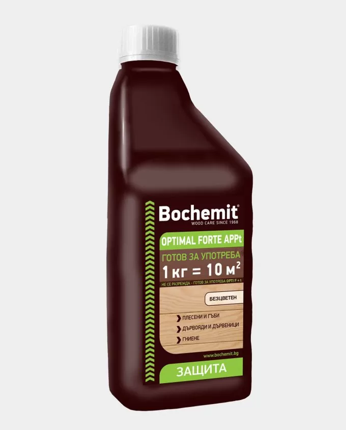 За постигане на максимален защитен ефект е важно дървото да бъде чисто и сухо преди нанасяне. Продуктът се прилага с четка, чрез пръскане или потапяне на дървесните елементи. Bochemit Optimal Forte APPt готов за употреба 1кг. осигурява оптимална концентрация при всяко използване, тъй като не изисква смесване с вода. След обработка повърхността трябва да изсъхне напълно преди последващи действия като боядисване или лакиране.Приложение и съвместимост
