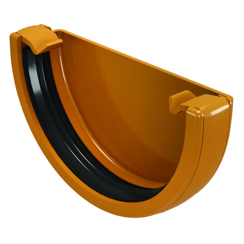 Изработена е от висококачествен PVC материал с UV защита, който гарантира устойчивост на продължително излагане на слънце, дъжд и замръзване. Размерите ѝ са съобразени за идеално прилягане към улуците от серия Classic 120, като осигурява херметично затваряне на края. Дизайнът включва прецизни уплътнения, които предотвратяват изтичане на вода, а гладката повърхност улеснява почистването и намалява риска от натрупване на замърсявания. Лекото тегло и модулната конструкция улесняват монтажа без нужда от специализирани инструменти.